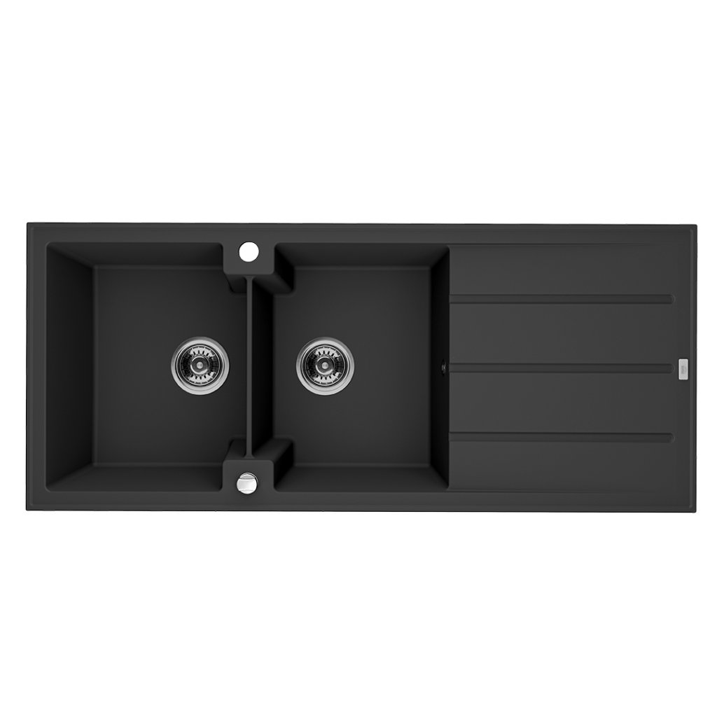 Laveo Canaria, 2-komorový granitový drez 1160x500x207 mm, čierna, LAV-SPC_B21T