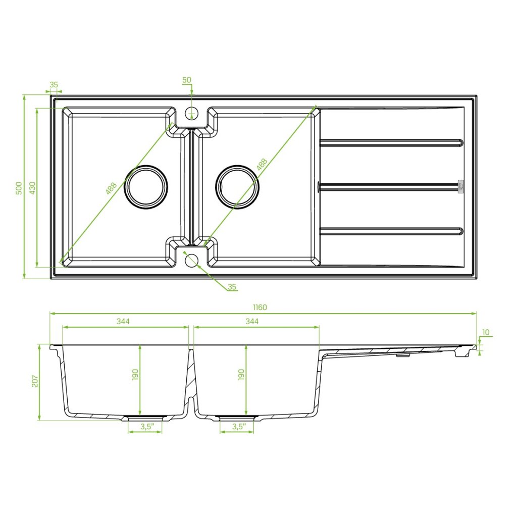 ➡️ Obojstranná konštrukcia drezu znamená, že ho môžete namontovať tak, aby misy a odkvapkávač boli na ľavej alebo pravej strane, v závislosti od vašich preferencií a usporiadania kuchyne. To poskytuje veľkú flexibilitu pri plánovaní priestoru.