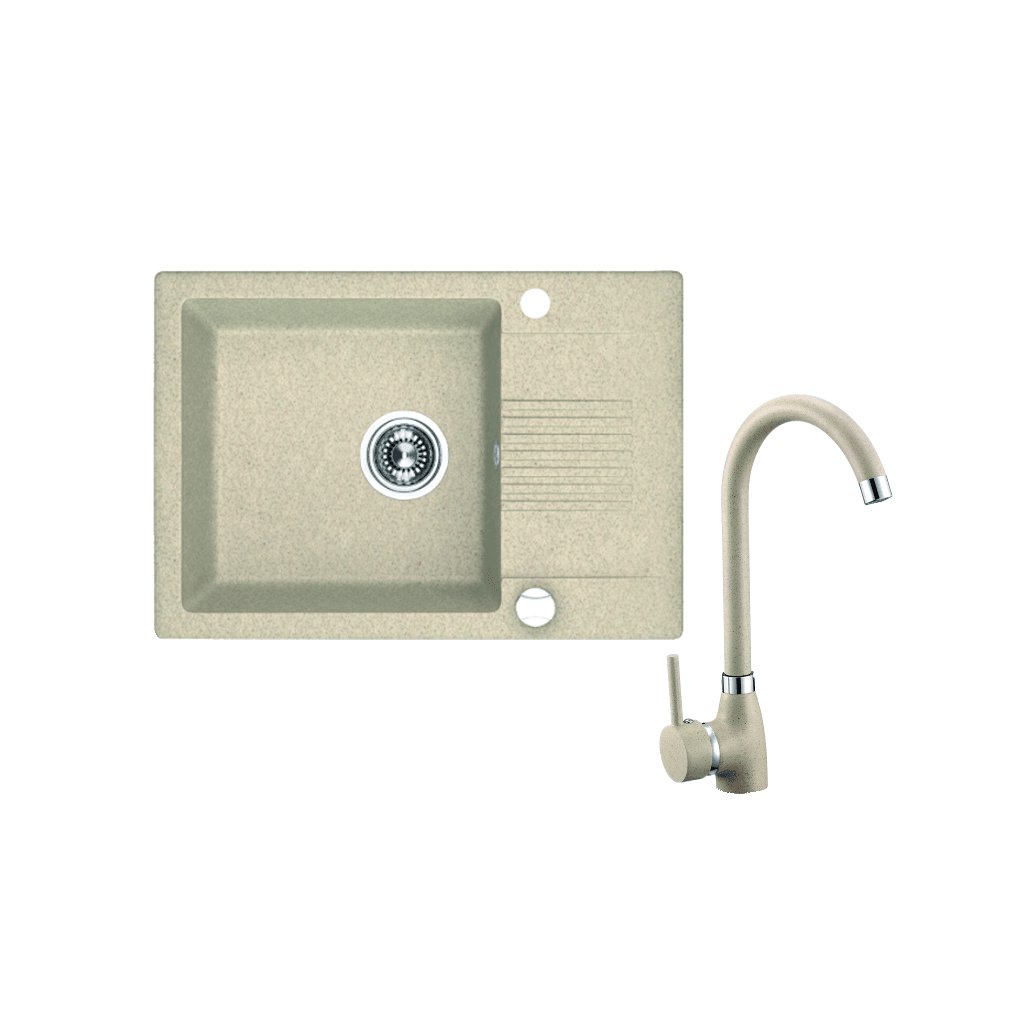 Laveo Ceilia, 1-komorový granitový drez 650x440x185mm + vysoká drezová batéria, béžová, LAV-SJCG413T