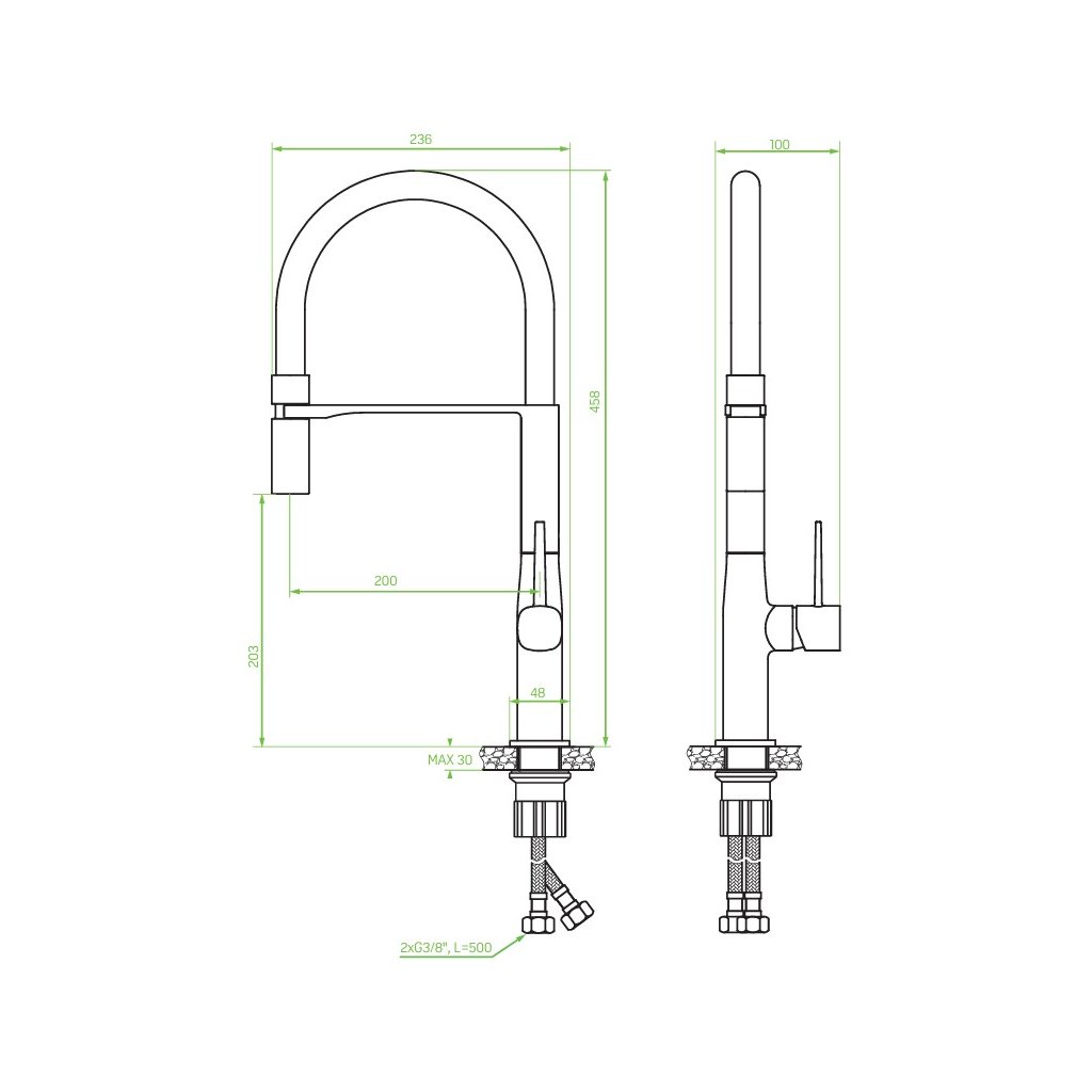 Colina je navrhnutá pre rýchlu a bezproblémovú inštaláciu, ktorá nevyžaduje špeciálne nástroje. Je to ponuka pre profesionálnych inštalatérov aj používateľov, ktorí si zariadia svoju kuchyňu sami.
