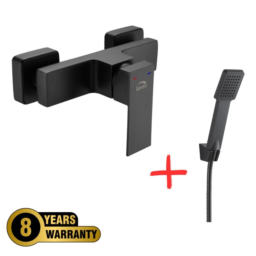 Laveo Kvadrato, sprchová batéria s ručnou sprchovou súpravou Orca, čierna matná, LAV-BLQA740D