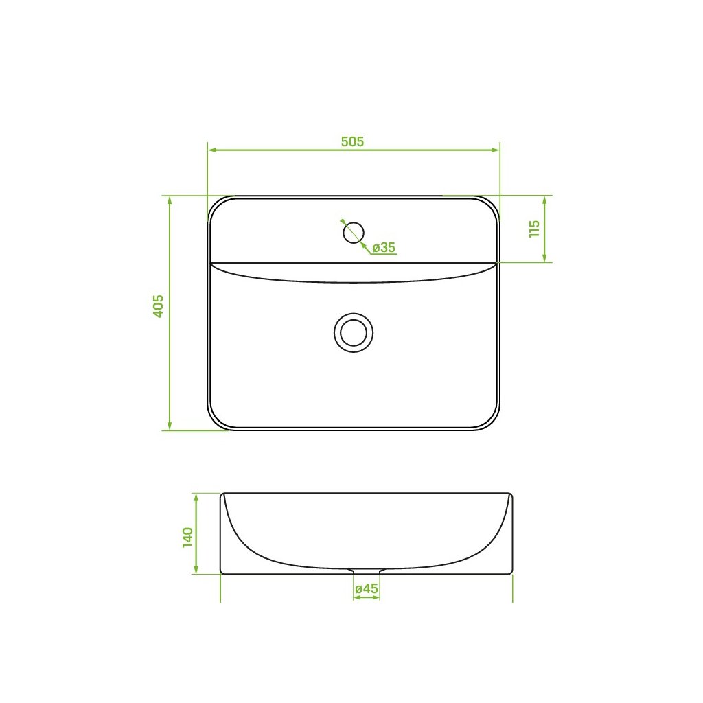 Laveo Mogami, umývadlo na dosku 505x405x140 mm, biela lesklá, LAV-VUM_6150
