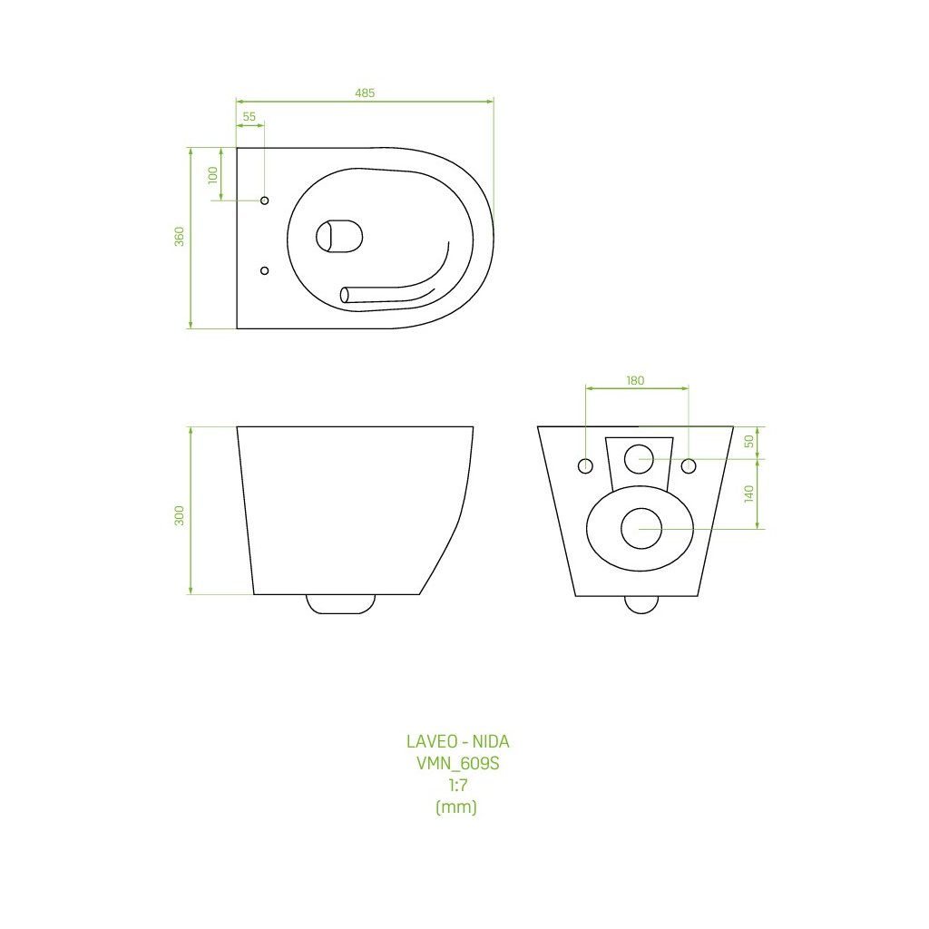 Laveo Nida Cycleon 2.0, závesná WC misa s toaletným sedadlom z duroplastu, Vortex splachovanie, biela lesklá, LAV-VMN_609S