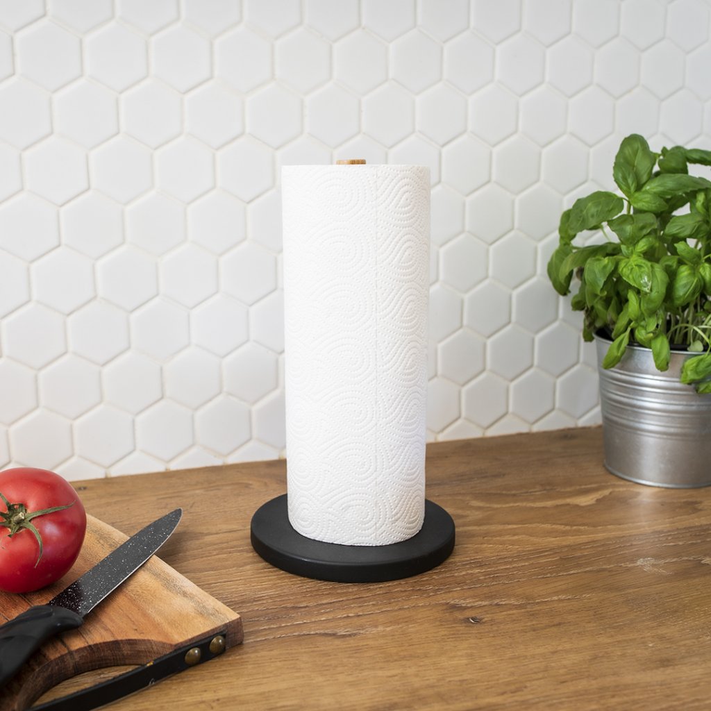 Stojan na čierne papierové utierky je okrem svojej funkčnosti veľmi efektnou dekoráciou v kuchyni. Stojan je vyrobený z ocele s práškovým nástrekom v čiernej farbe. Kovové prvky sú kombinované s veľmi pôsobivým bambusom. Moderný a jednoduchý tvar sa perfektne hodí k papierovým utierkam rôznych hrúbok. V súčasnosti vo väčšine kuchýň používame kuchynskú utierku na osušenie rúk, utieranie mokrého riadu a odstraňovanie prachu z dosiek a stolov. Uľahčuje pravidelné udržiavanie poriadku a vďaka stojanu v Osle bude uterák vždy po ruke.