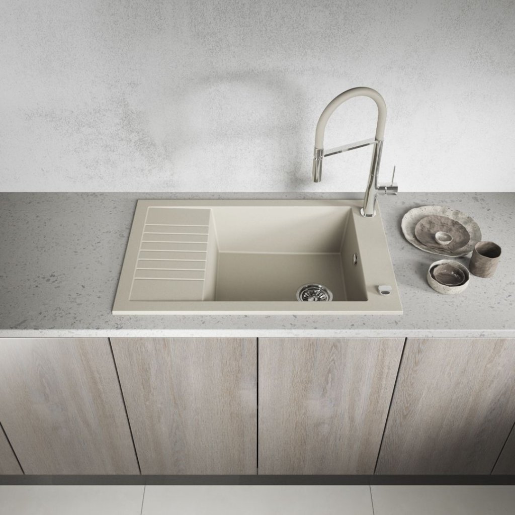 Laveo Pionier, 1-komorový granitový drez 780x500x207 s krátkym odkvapávačom, béžová, LAV-SBR_413T