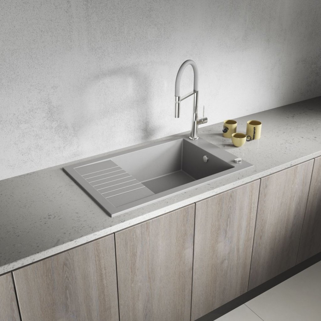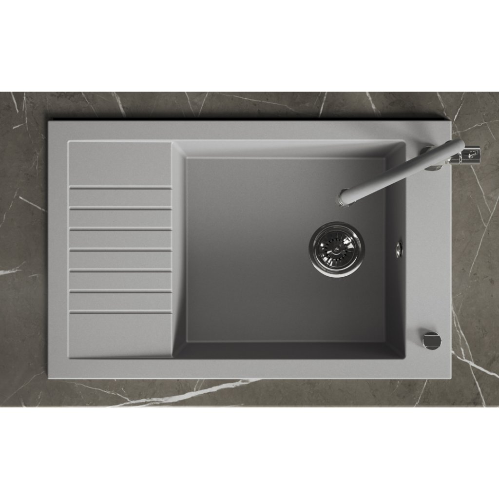 Laveo Pionier, 1-komorový granitový drez 780x500x207 s krátkym odkvapávačom, šedá, LAV-SBR_513T