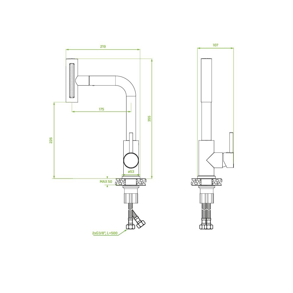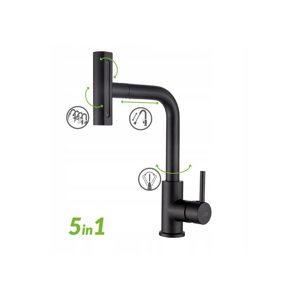 - Typ výtoku: otočný, výsuvný, 4-funkčný výtok