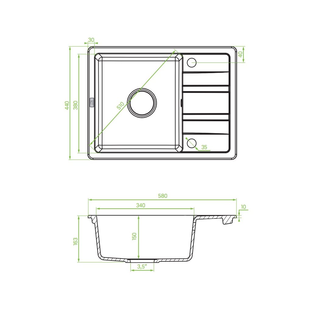 - Typ: 1-komorový drez s krátkym odkvapávačom