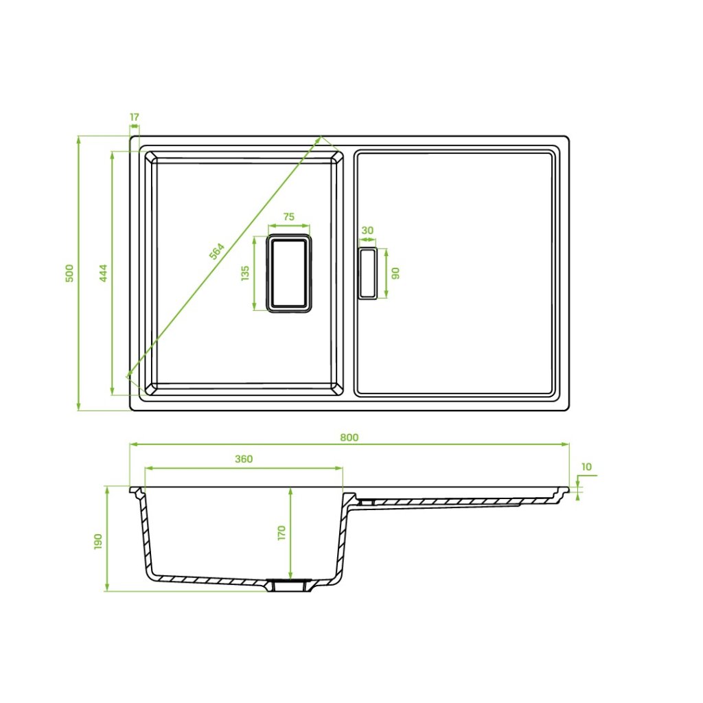 Kuchynský drez Tonga je navrhnutý pre odolnosť a spoľahlivosť. Je vyrobený z vysoko kvalitných materiálov, je odolný voči poškriabaniu a vysokým teplotám, čo zaisťuje jeho dlhotrvajúci estetický vzhľad. Zapustený do pracovnej dosky a vybavený ručnou zátkou, je to praktické riešenie, ktoré uľahčuje kontrolu nad odvádzaním vody a zvyšuje komfort používania.