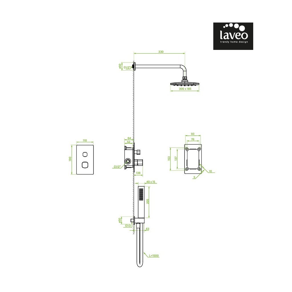 - Pridané vlastnosti: So systémom proti prekrúteniu, so systémom proti kameňom, s výškovým nastavením hornej dažďovej sprchy