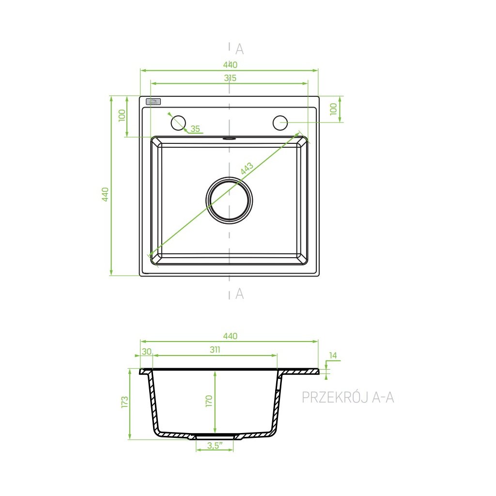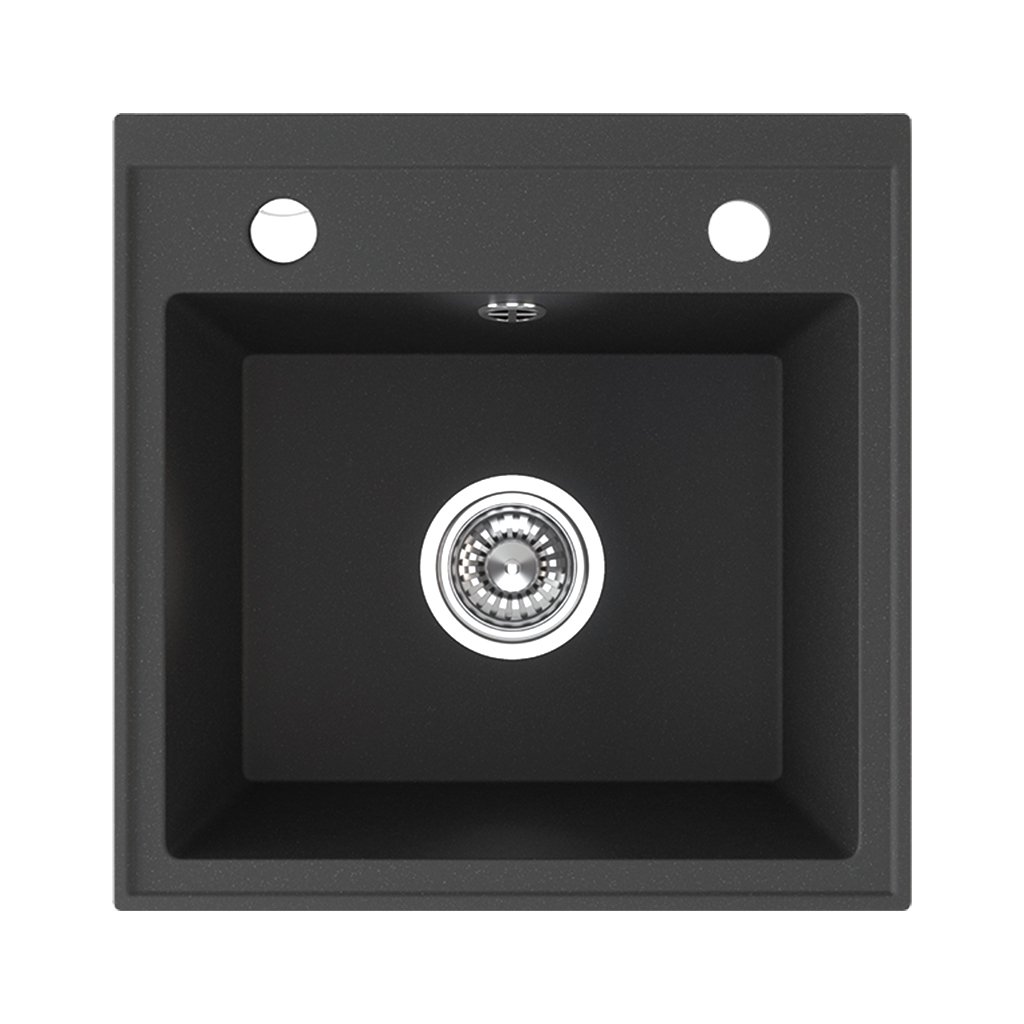 Laveo Trzynastka, 1-komorový granitový drez 440x440x173 mm, čierna škvrnitá, LAV-SBP_710T