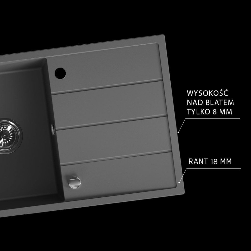 Laveo Wolin, 1-komorový granitový drez s odkvapkávačom, čierna, LAV-SPW_711T