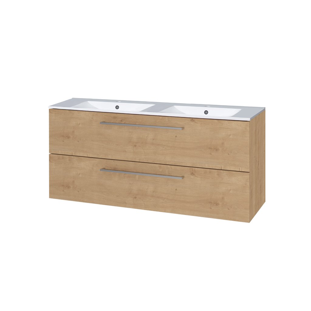 Mereo, Bino, kúpeľňová skrinka s keramickým umývadlom 121 cm, biela, dub, MER-CN623