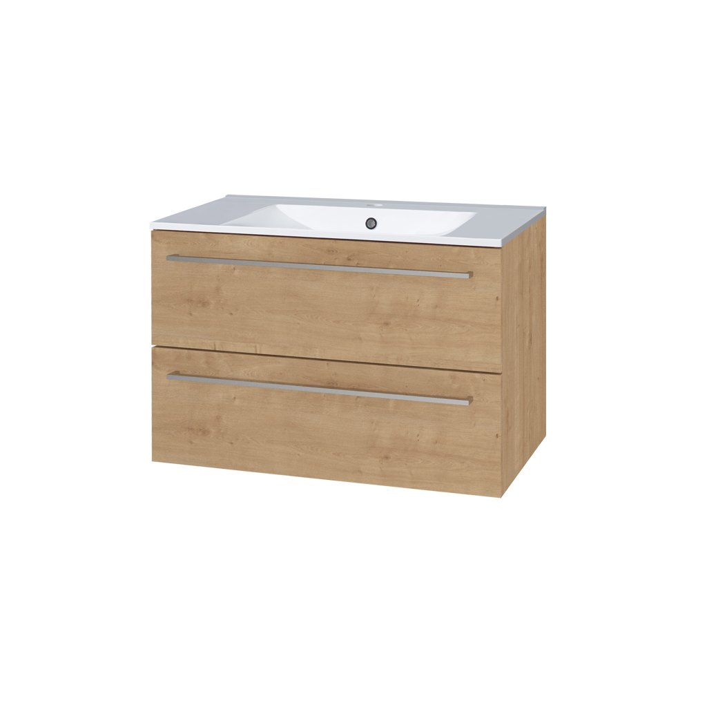 Mereo, Bino, kúpeľňová skrinka s keramickým umývadlom 81 cm, biela, dub, MER-CN621