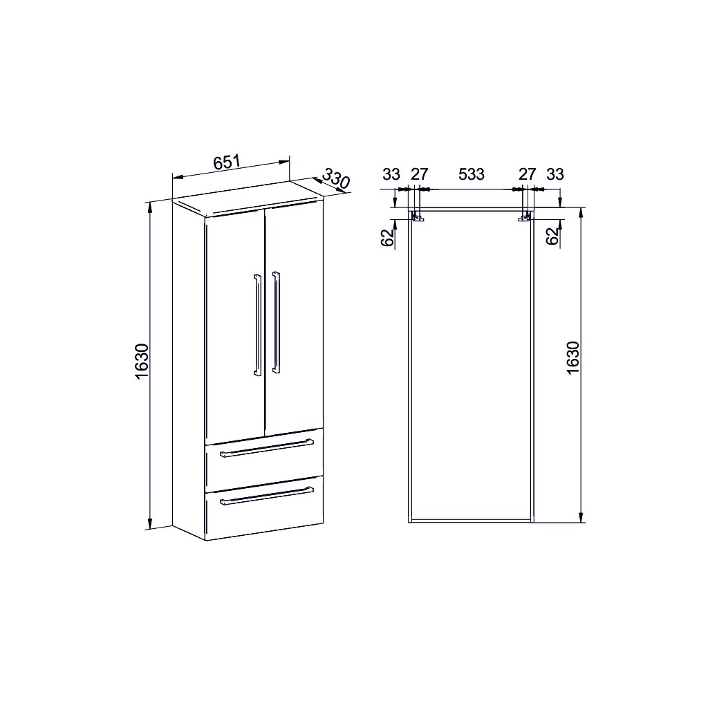 Mereo Bino, kúpeľňová skrinka vysoká 163 cm, dvojitá, Multidecor, Chromix strieborný, MER-CN699ACST