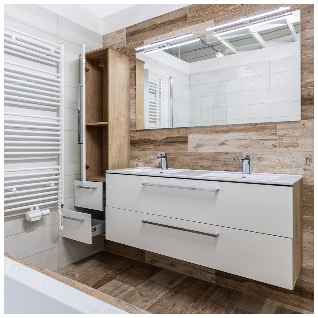 Jednoduchosť, efektívnosť, elegancia. To sú hlavné spoločné menovatele kúpeľňového nábytku Bino, ktorý ozdobí každú kúpeľňu. Vďaka kombinácii inovácií a spoľahlivého prístupu, potom vzniká kvalitný a zároveň veľmi moderný nábytok. Farebné kombinácie zaisťujú, že bude nábytok ladiť do každého typu kúpeľne. Užívateľsky veľmi praktické sú potom dve plnovýsuvné zásuvky so samozatváracími pojazdmi a tlmením Strong. Skrinka sa dodáva v zloženom stave.Dodatočné parametre