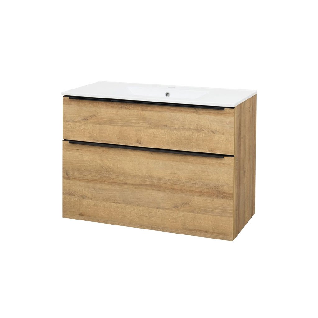 Mereo Mailo, kúpeľňová skrinka s keramickým umývadlom 101 cm, dub Riviera, čierne madlo, MER-CN522B