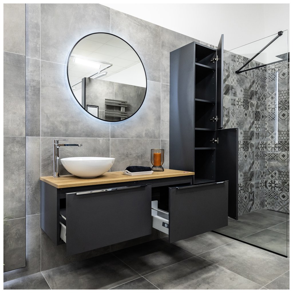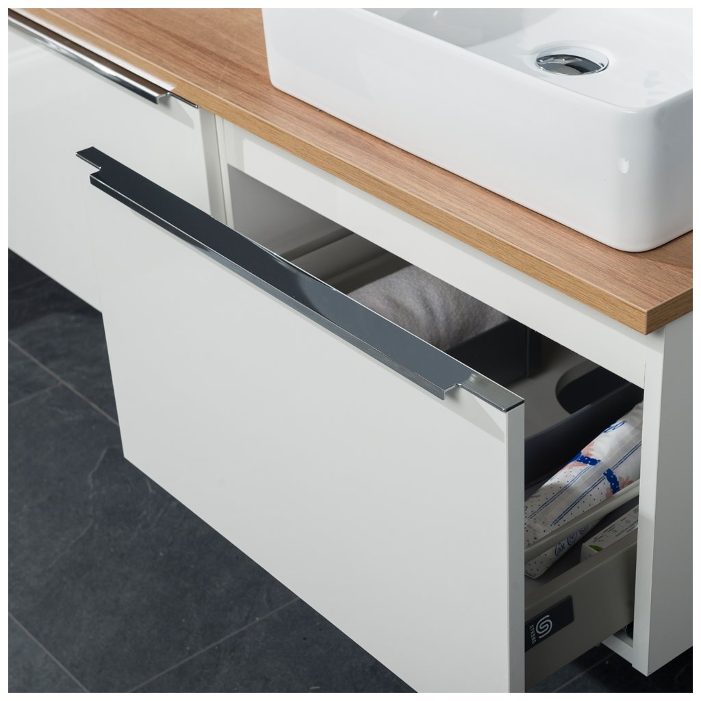Séria kúpeľňového nábytku Mailo umožňuje kombinovať skrinky do mnohých rôznych variantov. Vytvoriť tak je možné ako zložité kombinácie do veľkých kúpeľní, tak minimalistické riešenie v modernom dizajne. Zásuvky sú vybavené dizajnovými chrómovanými úchytkami a značkovými pojazdmi Strong s pomalým dovieraním. Na výber je z troch farebných kombinácií, biela lesk, dub Riviera a antracit. Skrinky sú dodávané zmontované a všetky sú určené na zavesenie.Nábytková keramické umývadlá s jedným otvorom pre stojankovú batériu v luxusnom SLIM dizajne s hrúbkou hrany iba 20 mm. S týmito umývadlami sa splní Vaše požiadavky na jednoduché a zároveň atraktívne vybavenia kúpeľne za atraktívne ceny. Benefity týchto umývadiel sú bezpochyby funkčnosť a príjemný vzhľad. Umývadlo je určené pre nábytok, nie je možné inštalovať samostatne na stenu. Zápustné umývadlá podporia moderný a elegantný vzhľad každej kúpeľne a doladia tak celkový dizajn interiéru.