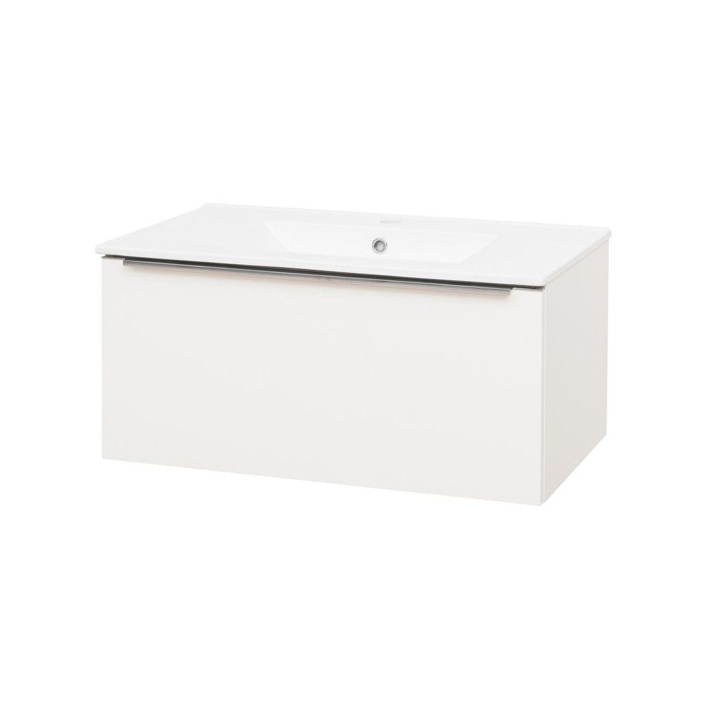 Mereo Mailo, kúpeľňová skrinka s keramickým umývadlom 81 cm, biela, chróm madlo, MER-CN516