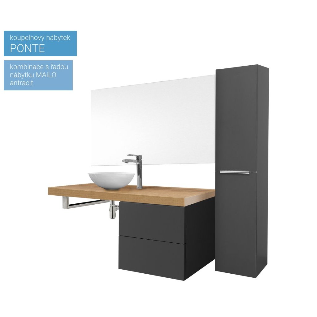 Séria kúpeľňového nábytku Ponte umožňuje kombinovať skrinky a dosky do rôznych variant. Umožňuje vytvoriť kombinácie do velkých kúpeľní, ako aj minimalistické riešenie v modernom dizajne. Otváranie zásuviek je riešené systémom push-open, teda otváranie bez úchytiek. Zásuvky sú osadené kvalitným nemeckým kovaním značky BLUM s pomalým dovieraním. Na výber sú farebné varianty Multidecor. Skrinky sú dodávané v zmontovanom stave a všetky sú určené na zavesenie.Dodatočné parametre