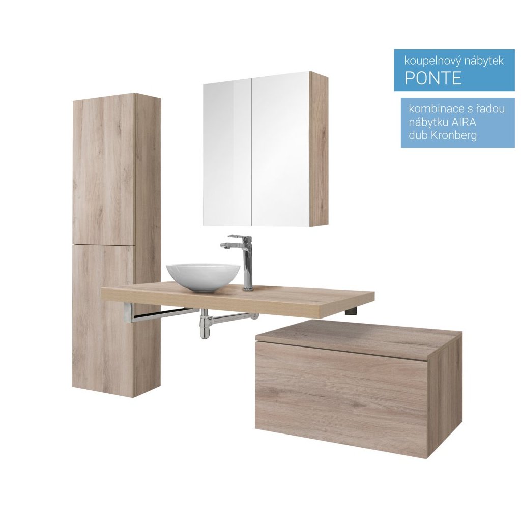 Séria kúpeľňového nábytku Ponte umožňuje kombinovať skrinky a dosky do rôznych variant. Umožňuje vytvoriť kombinácie do velkých kúpeľní, ako aj minimalistické riešenie v modernom dizajne. Otváranie zásuviek je riešené systémom push-open, teda otváranie bez úchytiek. Zásuvky sú osadené kvalitným nemeckým kovaním značky BLUM s pomalým dovieraním. Na výber sú farebné varianty Multidecor. Skrinky sú dodávané v zmontovanom stave a všetky sú určené na zavesenie.Dodatočné parametre