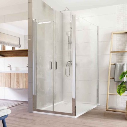 Mereo, Sprchový kút, Lima, obdĺžnik, lietacie dvere a pevný diel, chróm ALU, sklo Číre, MER-CK87543K