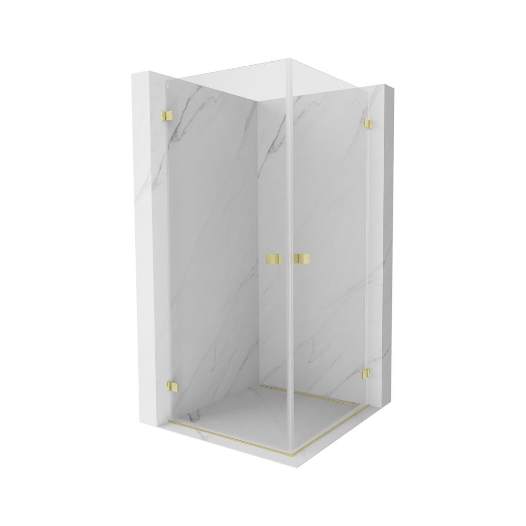 Mexen Lunar-B Duo, výklopný sprchový kút 70 x 70 cm, 8mm číre sklo, zlatý matný profil, 832-070L-070P-55-00