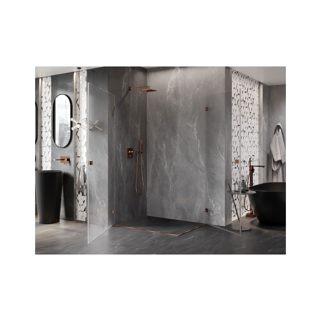 Mexen Lunar-B Duo, výklopný sprchový kút 80 x 70 cm, 8mm číre sklo, profil ružové zlato, 832-080L-070P-60-00