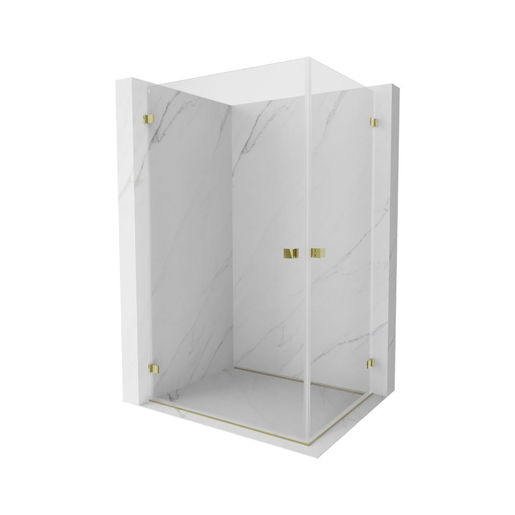 Mexen Lunar-B Duo, výklopný sprchový kút 90 x 80 cm, 8mm číre sklo, zlatý profil, 832-090L-080P-50-00