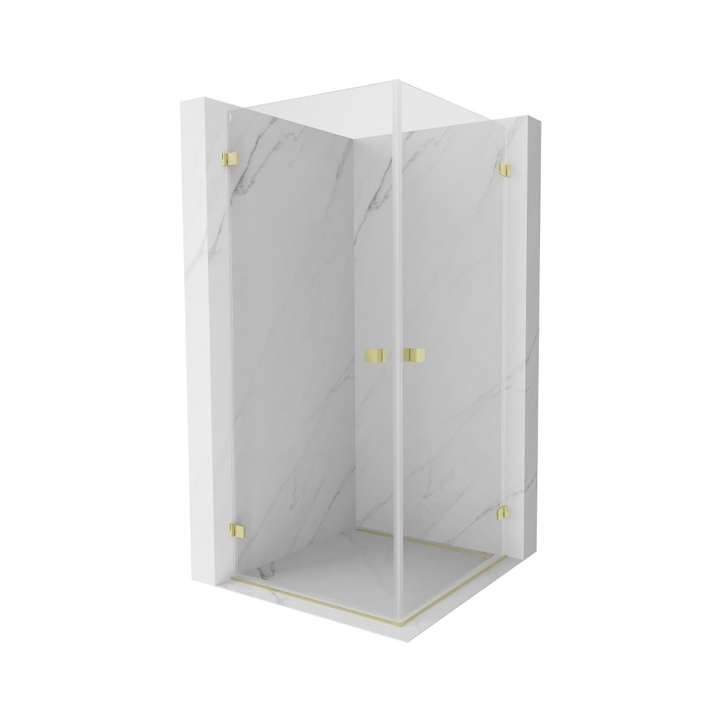 Mexen Lunar-B Duo, výklopný sprchový kút 90 x 90 cm, 8mm číre sklo, zlatý matný profil, 832-090L-090P-55-00