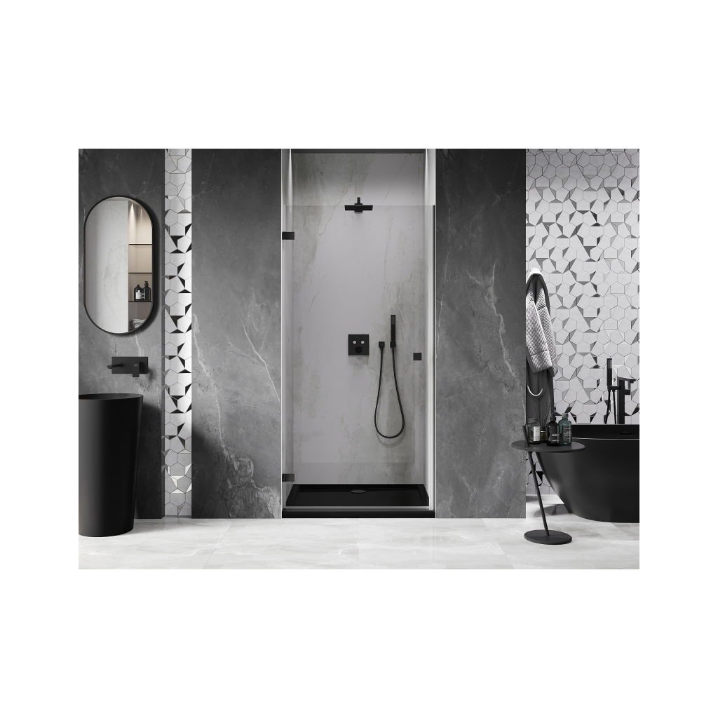 Mexen, Mexen Lunar-B Otočné ľavé sprchové dvere 60 cm, transparentné, čierne - 832-060-000-70-00-L