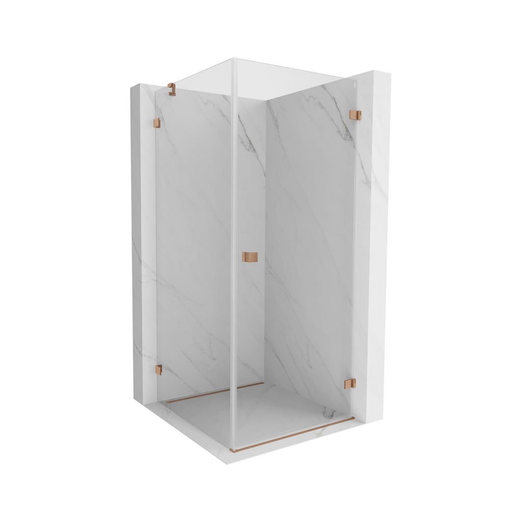 Mexen Lunar-B, pravostranný výklopný sprchový kút 70 x 70 cm, 8mm číre sklo, profil medená matná, 832-070-070-65-00-P