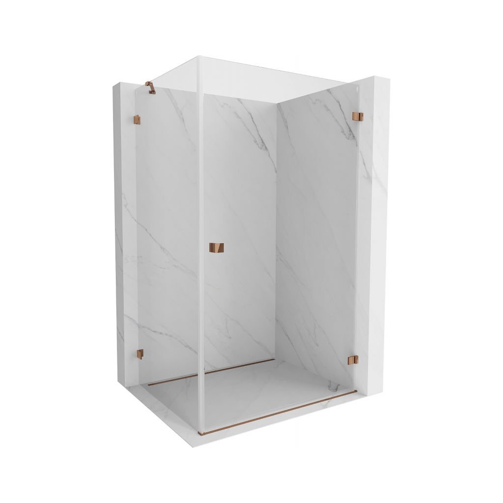 Mexen Lunar-B, pravostranný výklopný sprchový kút 85 x 70 cm, 8mm číre sklo, profil ružové zlato, 832-085-070-60-00-P