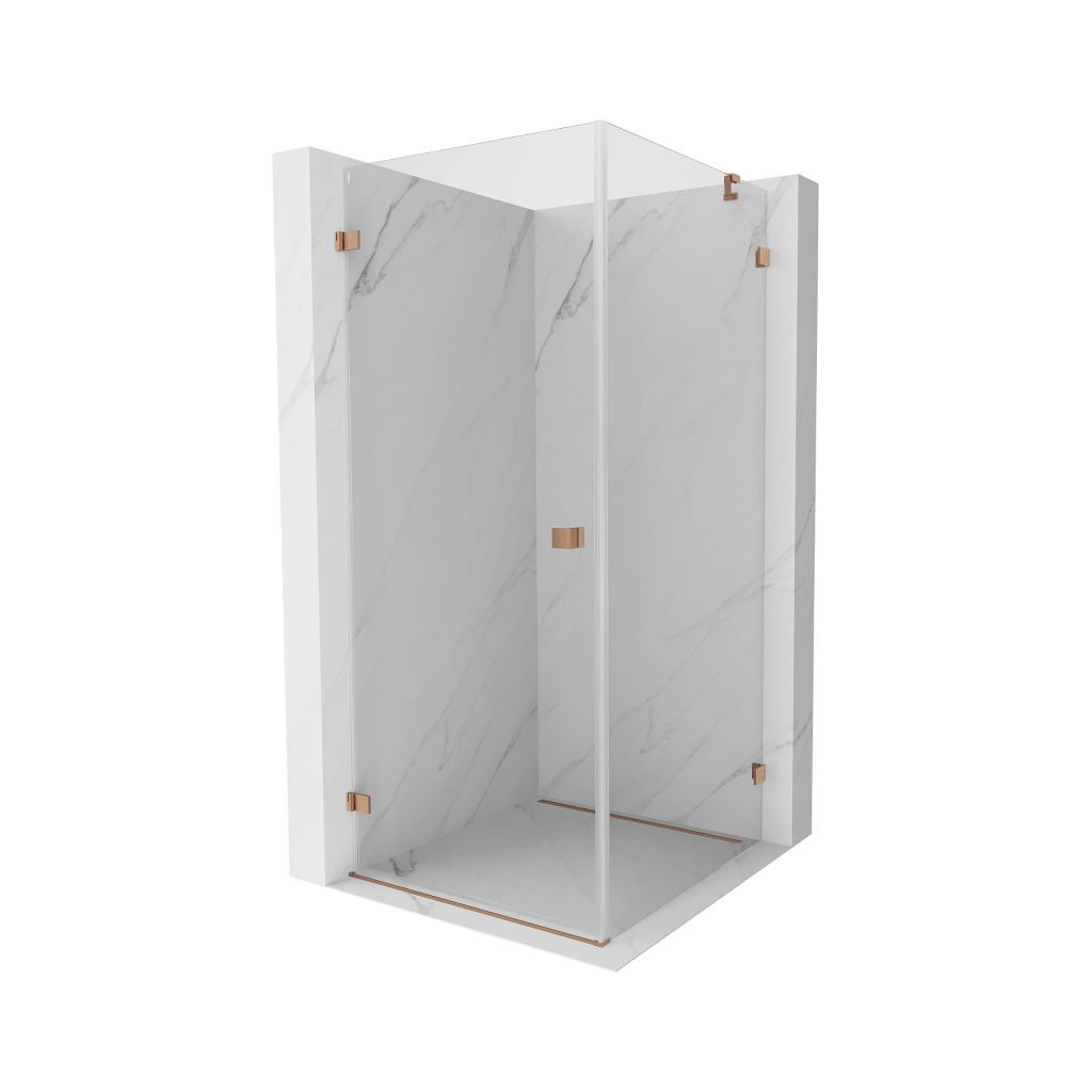 Mexen Lunar-B, výklopný sprchový kút ľavý 70 x 70 cm, 8mm číre sklo, profil medená matná, 832-070-070-65-00-L