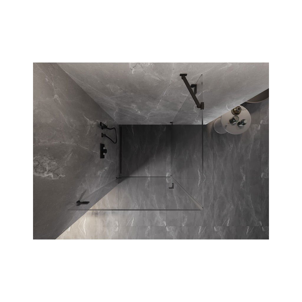 Mexen Lunar-B, výklopný sprchový kút ľavý 70 x 70 cm, 8mm číre sklo, čierny profil, 832-070-70-00-L