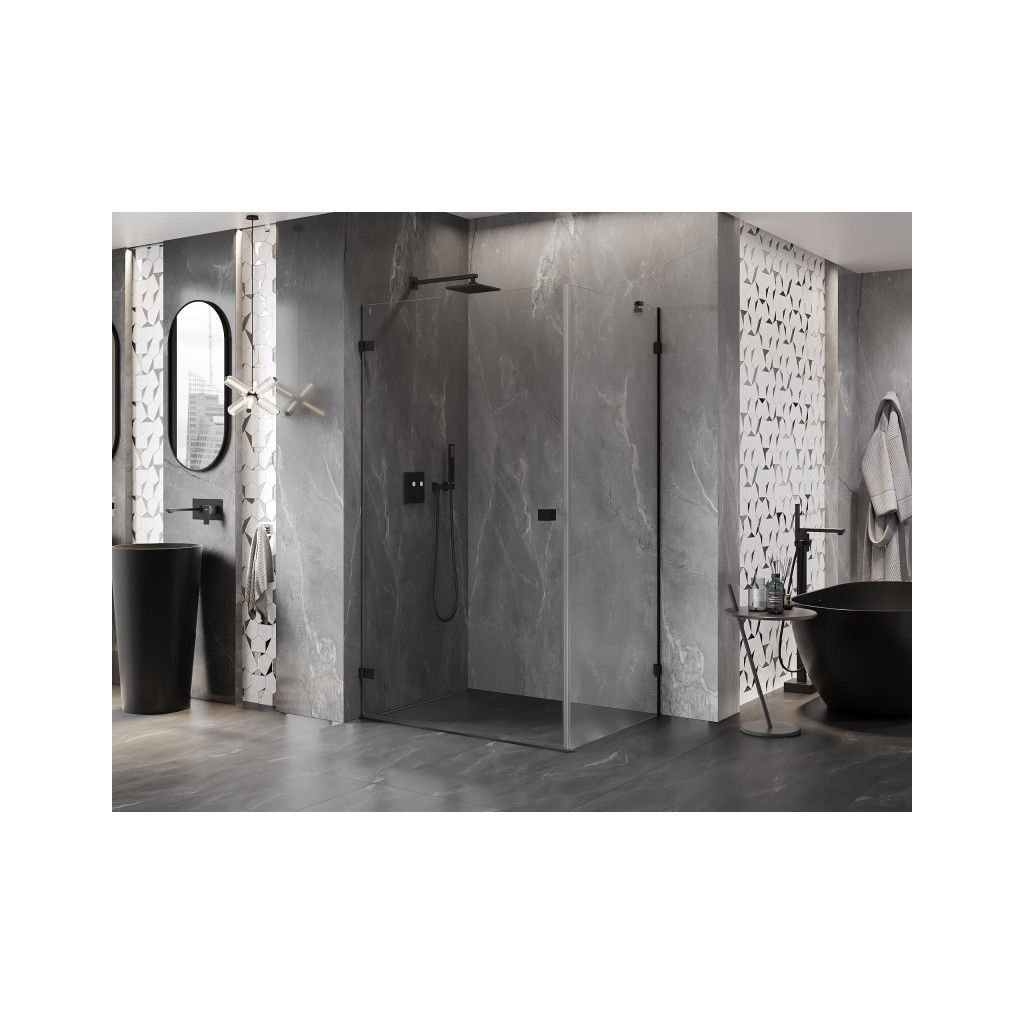 Mexen Lunar-B, výklopný sprchový kút ľavý 75 x 70 cm, 8mm číre sklo, čierny profil, 832-075-070-70-00-L