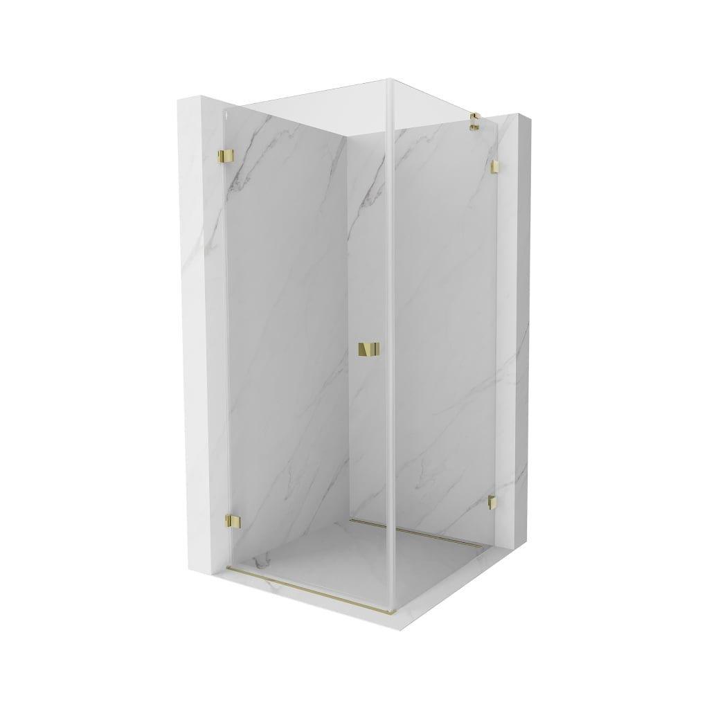 Mexen Lunar-B, výklopný sprchový kút ľavý 80 x 80 cm, 8mm číre sklo, zlatý profil, 832-080-080-50-00-L