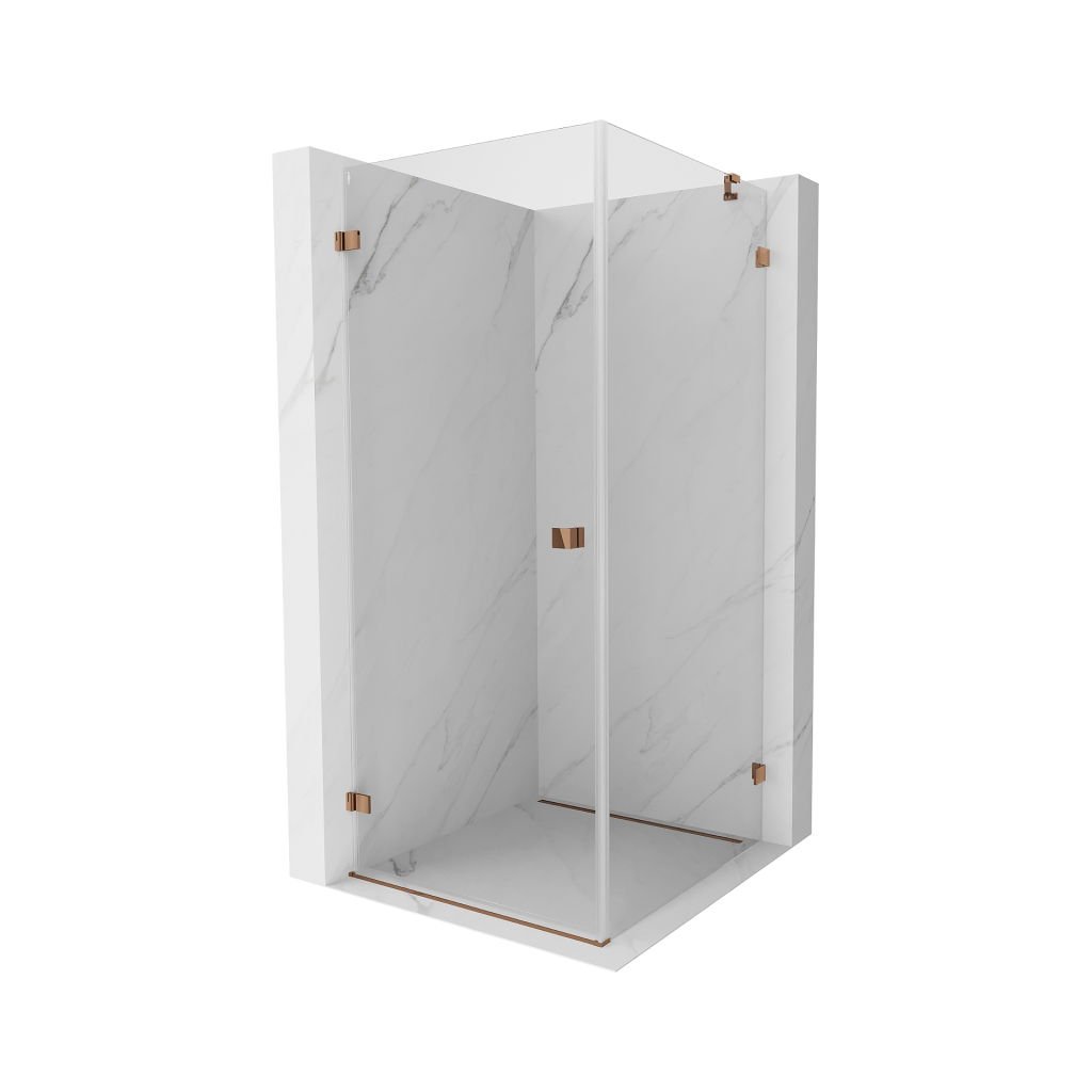 Mexen Lunar-B, výklopný sprchový kút ľavý 90 x 90 cm, 8mm číre sklo, profil ružové zlato, 832-090-090-60-00-L