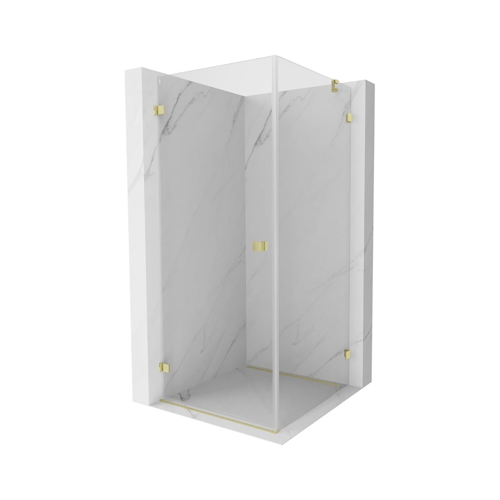 Mexen Lunar-B, výklopný sprchový kút ľavý 90 x 90 cm, 8mm číre sklo, zlatý kartáčovaný - 832-090-090-55-00-L