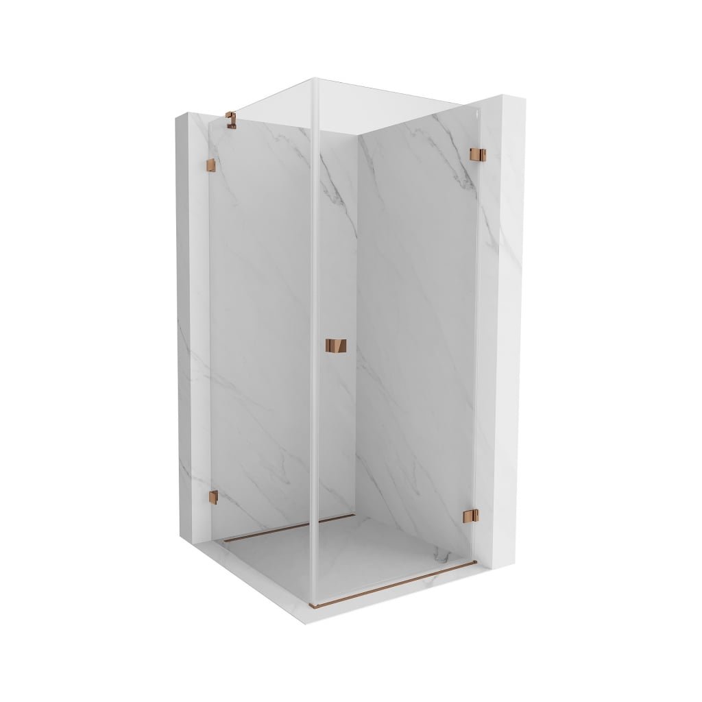 Mexen Lunar-B, výklopný sprchový kút pravý 100 x 100 cm, 8mm číre sklo, profil ružové zlato, 832-100-100-60-00-P