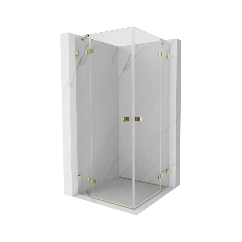 Mexen Lunar Duo, výklopný sprchový kút 110 x 110 cm, 8mm číre sklo, zlatý profil, 834-110L-110P-50-00