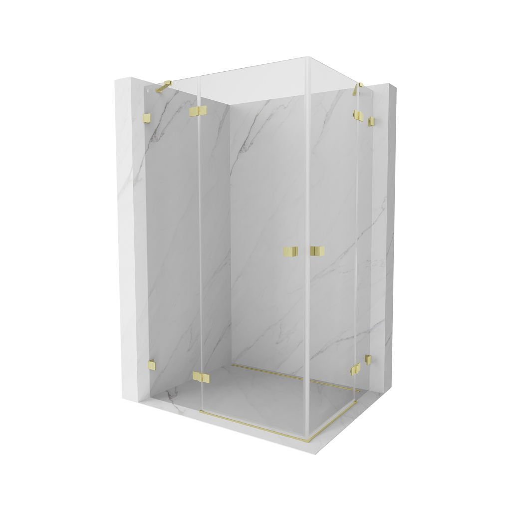 Mexen Lunar Duo, výklopný sprchový kút 115 x 100 cm, 8mm číre sklo, zlatý matný profil, 834-115L-100P-55-00