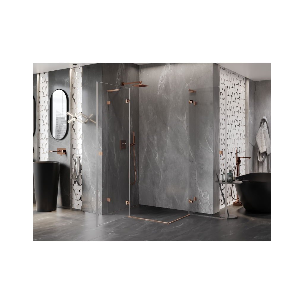 Mexen Lunar, L Duo výklopný sprchový kút 115 x 100 cm, 8mm číre sklo, profil medená matná, 834L-115L-100P-65-00
