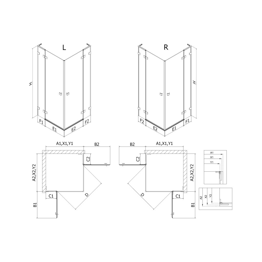 Mexen Lunar, L Duo výklopný sprchový kút 120 x 105 cm, 8mm číre sklo, chrómový profil, 834L-120L-105P-01-00