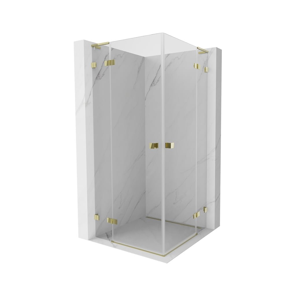 Mexen Lunar, L Duo výklopný sprchový kút 120 x 120 cm, 8mm číre sklo, zlatý profil, 834L-120L-120P-50-00