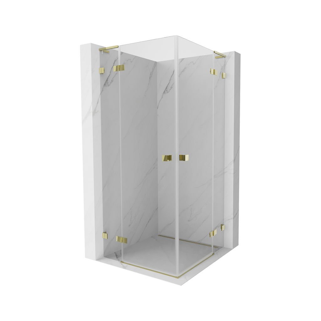 Mexen Lunar, L Duo výklopný sprchový kút 75 x 75 cm, 8mm číre sklo, zlatý profil, 834L-075L-075P-50-00