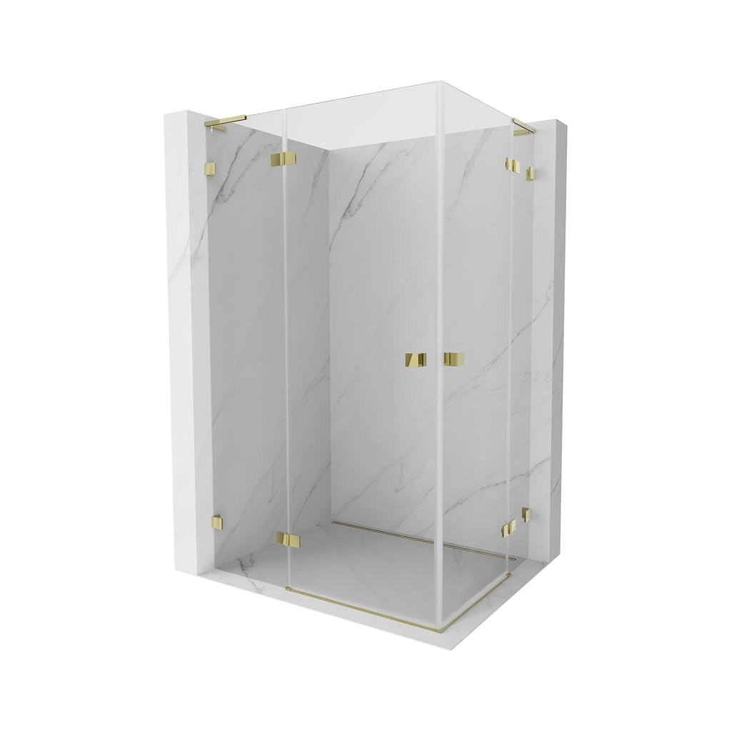 Mexen Lunar, L Duo výklopný sprchový kút 80 x 75 cm, 8mm číre sklo, zlatý profil, 834L-080L-075P-50-00