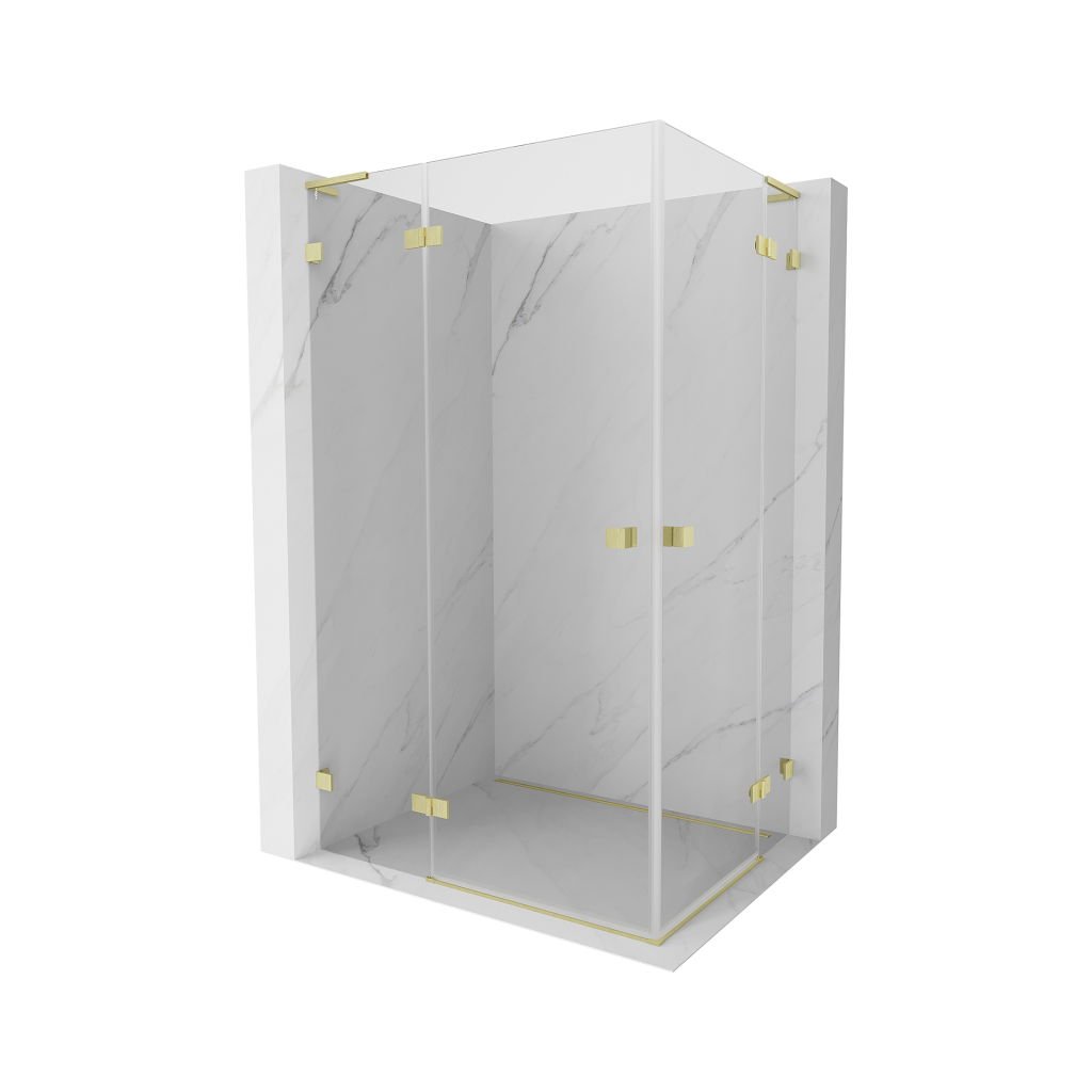Mexen Lunar, L Duo výklopný sprchový kút 95 x 80 cm, 8mm číre sklo, zlatý matný profil, 834L-095L-080P-55-00