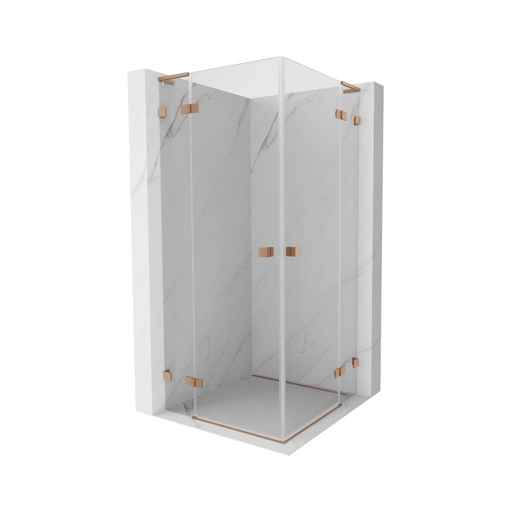 Mexen Lunar, L Duo výklopný sprchový kút 95 x 95 cm, 8mm číre sklo, profil medená matná, 834L-095L-095P-65-00