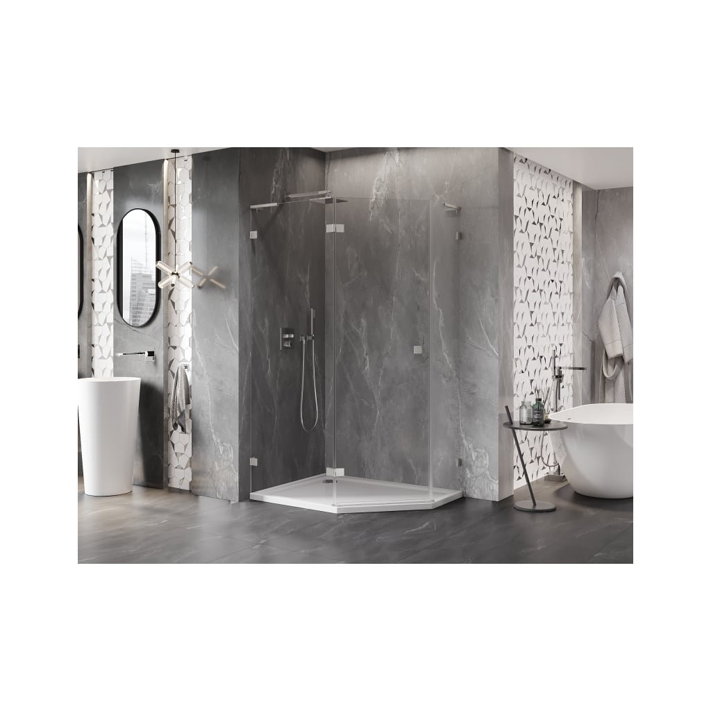 Mexen Lunar, L päťuholníkový sprchový kút naklápací doľava 100 x 80 cm, 8mm číre sklo, oceľový profil, 831L-100L-080P-97-00-L